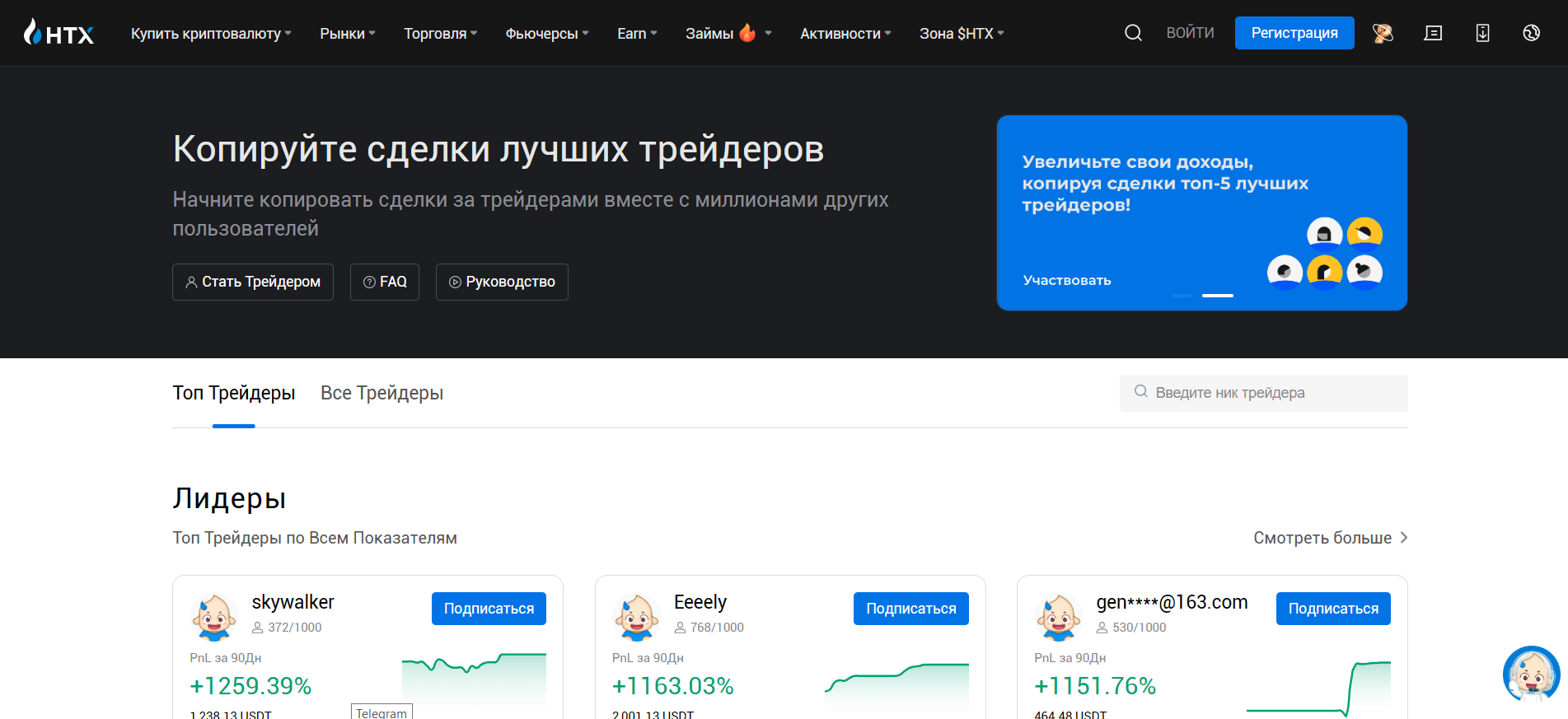- На платформе нет комиссий за копитрейдинг.