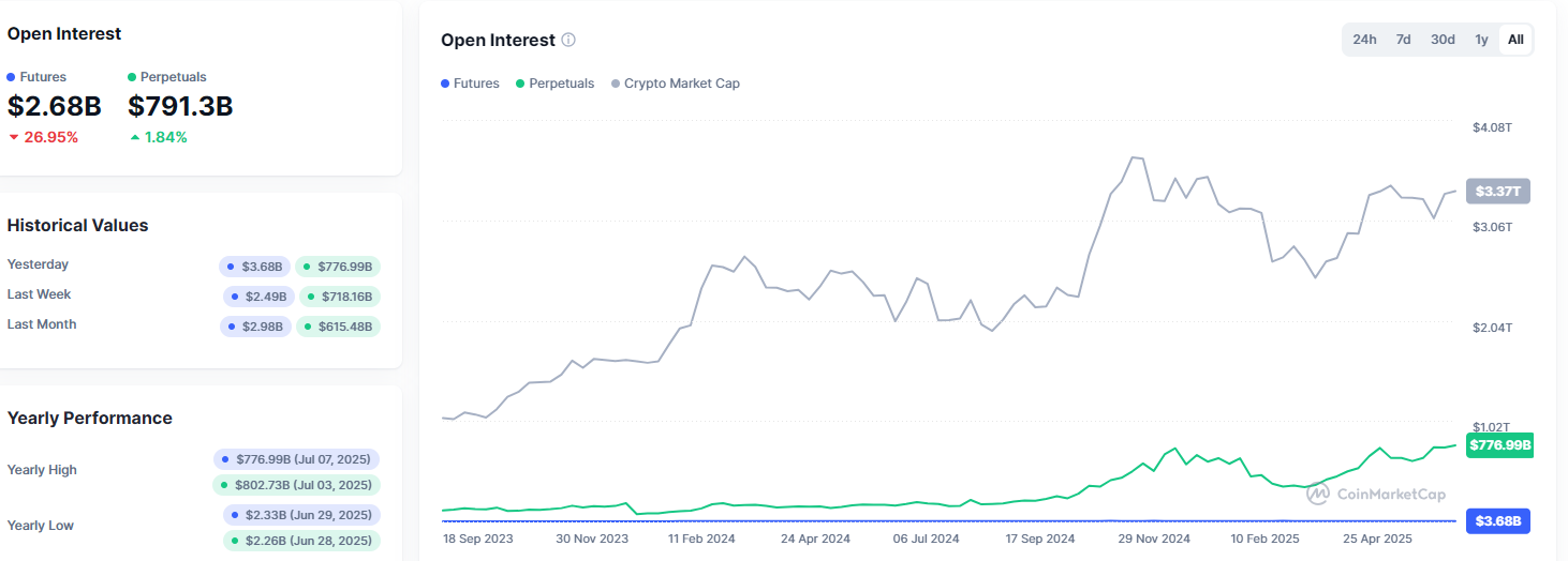 На момент написания обзора, открытый интерес по классическим фьючерсам составляет $2,68 млрд, тогда как по бессрочным контрактам он равен $791,3 млрд.