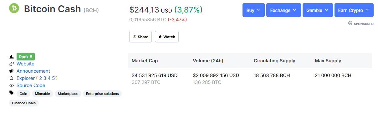 Случай 1: При ответе на вопрос о том, что такое форк биткоина, многие вспоминают Bitcoin Cash (BCH). Актив появился в 2017 году в результате хардфорка на блокчейне биткоина. Криптовалюта успешно существует и по сей день.