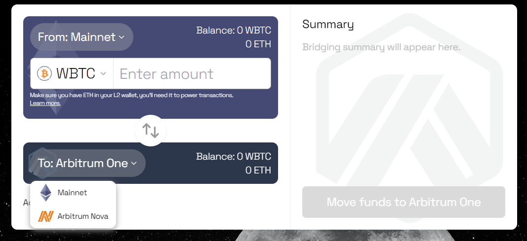 - Вернитесь на сайт Arbitrum Bridge и перейдите к мосту.