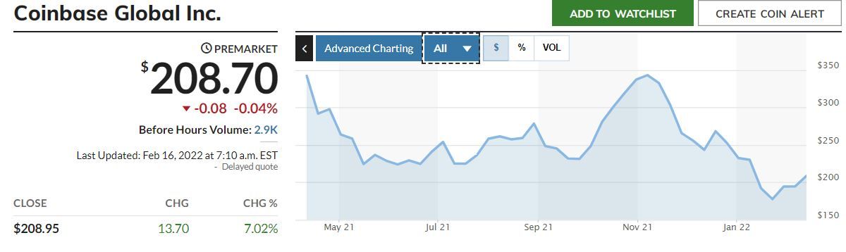 Coinbase – это основанная в 2012 году биржа цифровых активов. 14 февраля 2021 года торговая платформа первой среди криптокомпаний в США провела прямой листинг своих акций.