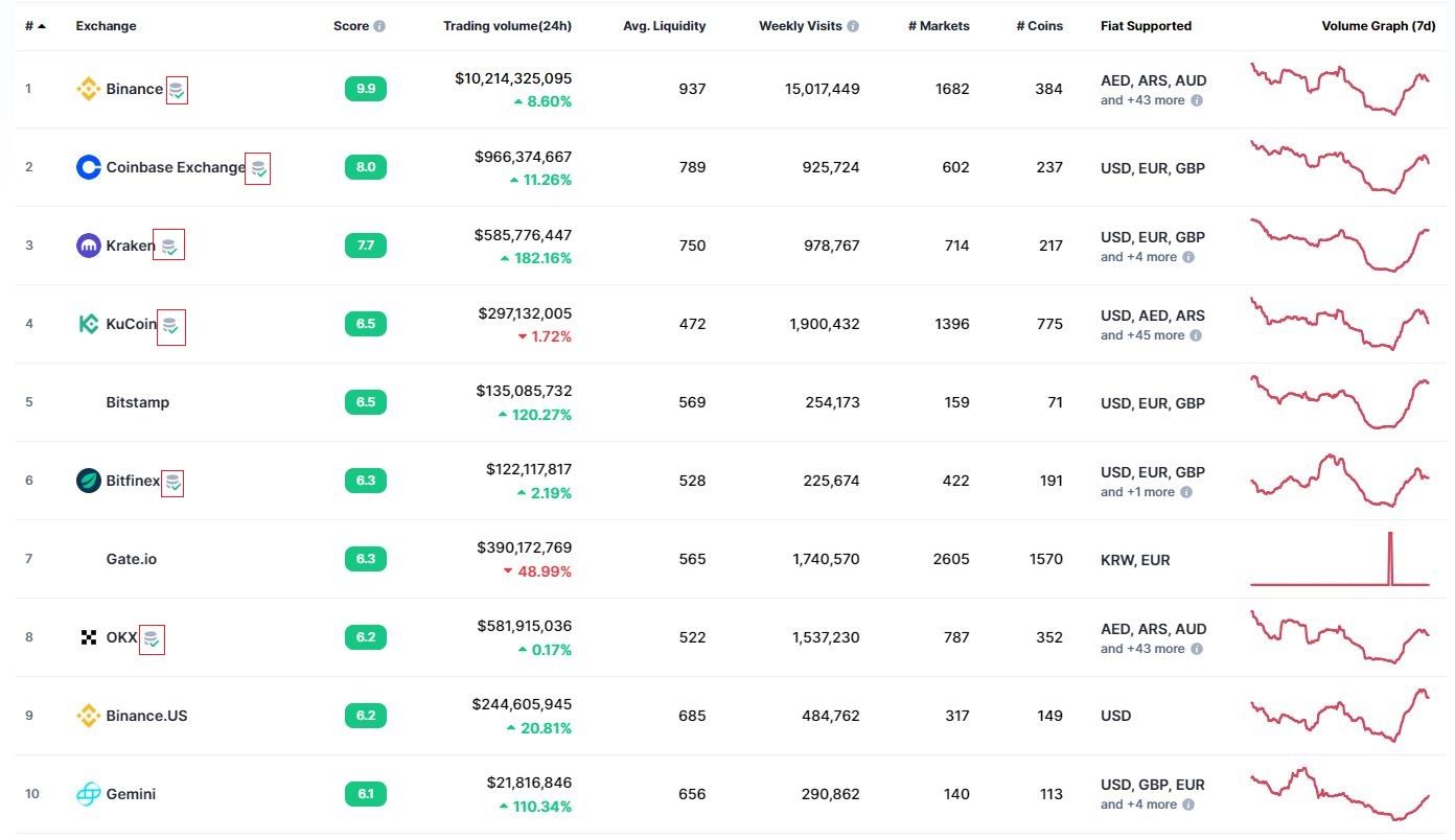 В конце ноября 2022 года популярная платформа-агрегатор данных о криптовалютах CoinMarketCap запустила трекер криптобирж, которые предоставили Proof-of-Reserve. С его помощью можно посмотреть, какие площадки опубликовали доказательства резервов. Такие криптобиржи отмечены специальным значком: