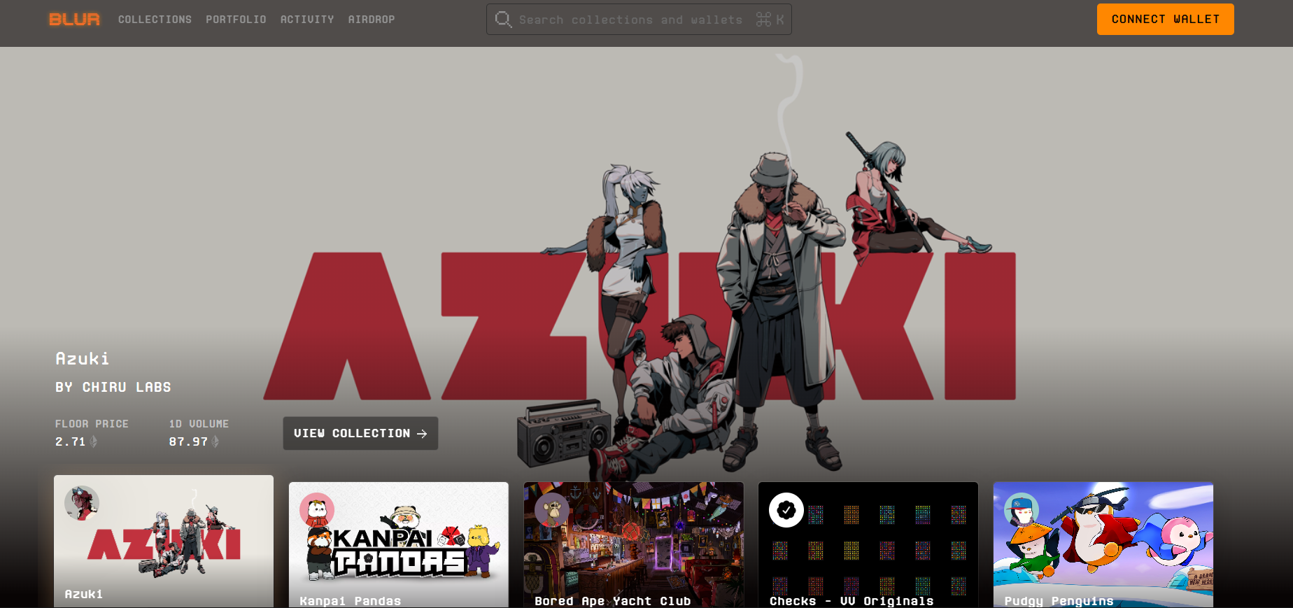 Blur — это NFT-маркетплейс, ориентированный на профессиональных трейдеров. Платформа была запущена в октябре 2022 года и быстро завоевала популярность благодаря своим продвинутым инструментам для торговли и нулевым комиссиям. На протяжении 2024 года Blur была ведущим маркетплейсом для невзаимозаменяемых токенов.