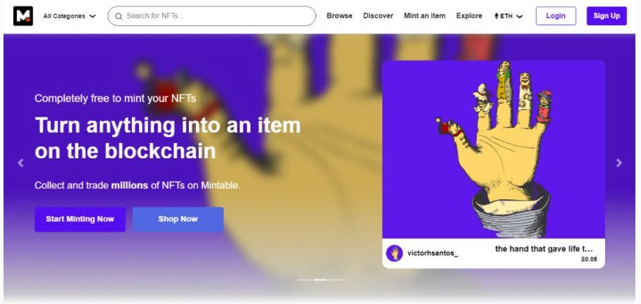 Mintable – это пример NFT площадки, где можно зарабатывать на покупках. За каждый приобретенный невзаимозаменяемый токен платформа переводит покупателю нативные монеты проекта – MINT.