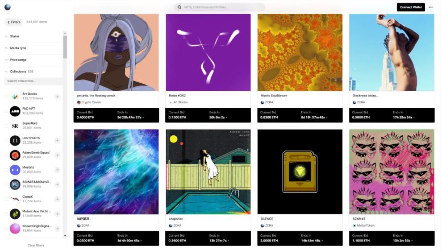 Zora – пример децентрализованной NFT платформы аукционного типа. Задача проекта – сформировать условия для полностью автономной работы цифровых художников с аудиторией.