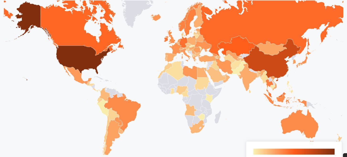 Чтобы понять, где находится крупнейший центр майнинга, нужно выяснить, в каких странах сконцентрировано наибольшее количество хешрейта самой капитализированной криптовалюты — биткоина (BTC). Для этого взглянем на карту майнинга, созданную аналитиками Кембриджского университета. На ней видно, что наибольший объем хешрейта BTC сконцентрирован в США.
