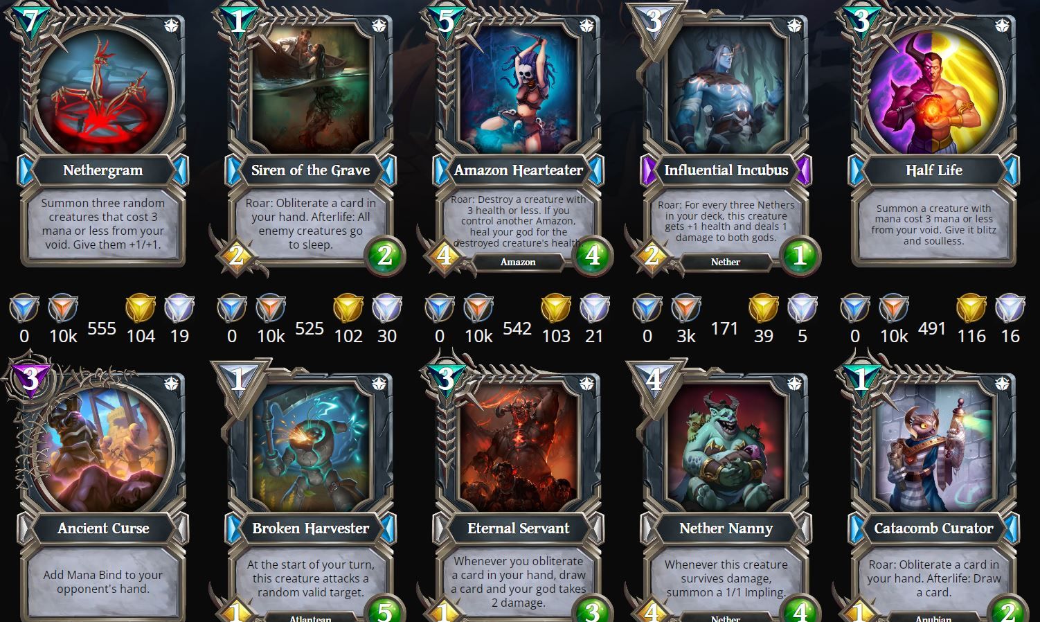 Поскольку Gods Unchained – карточная игра, в первую очередь, пользователям нужно разобраться в составляющей колоды. Карты различаются по ряду характеристик, включая следующие: