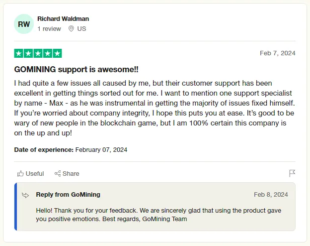Опыт работы с GoMining, отраженный в оценке Trustpilot в 4,3 балла, свидетельствует о том, что сообщество ценит развитие платформы, ее прозрачность и поддержку клиентов.
