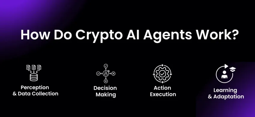 Как говорилось ранее, ИИ-агенты автоматизируют задачи в блокчейне. Они собирают данные, анализируют их с помощью искусственного интеллекта и затем автоматизировано принимают решения.
