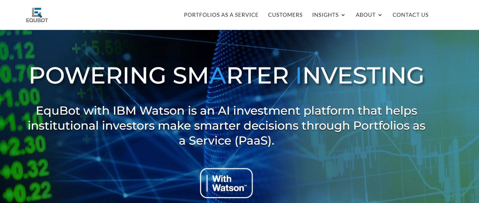 | EquBot | Только традиционные финансовые инструменты | ИИ работает на базе IBM Watson. Есть доступ к портфолио как услуга. | Доступен только институционалам. Нет инструментов для криптовалют. | По запросу. |