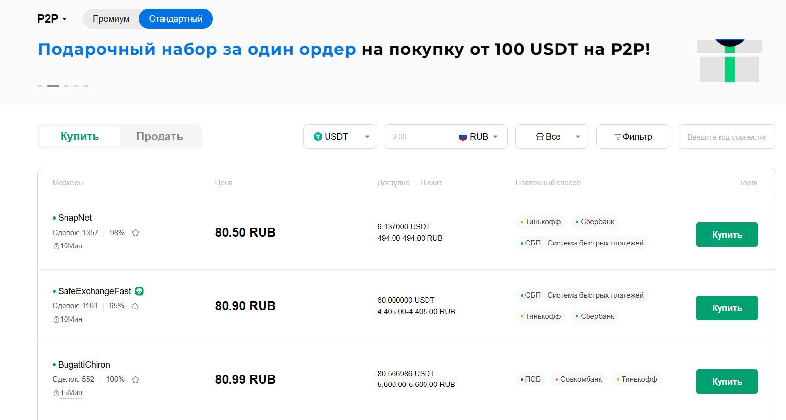 Безопаснее всего пользоваться P2P-платформ на крупных криптобиржах, где сделки защищены эскроу. Биржи блокируют криптовалюту продавца до подтверждения оплаты, что минимизирует риск мошенничества.