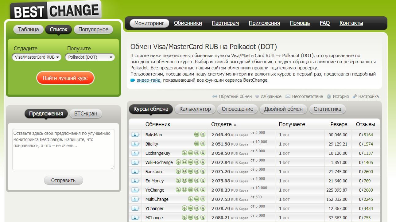 2. Купить Polkadot в обменнике