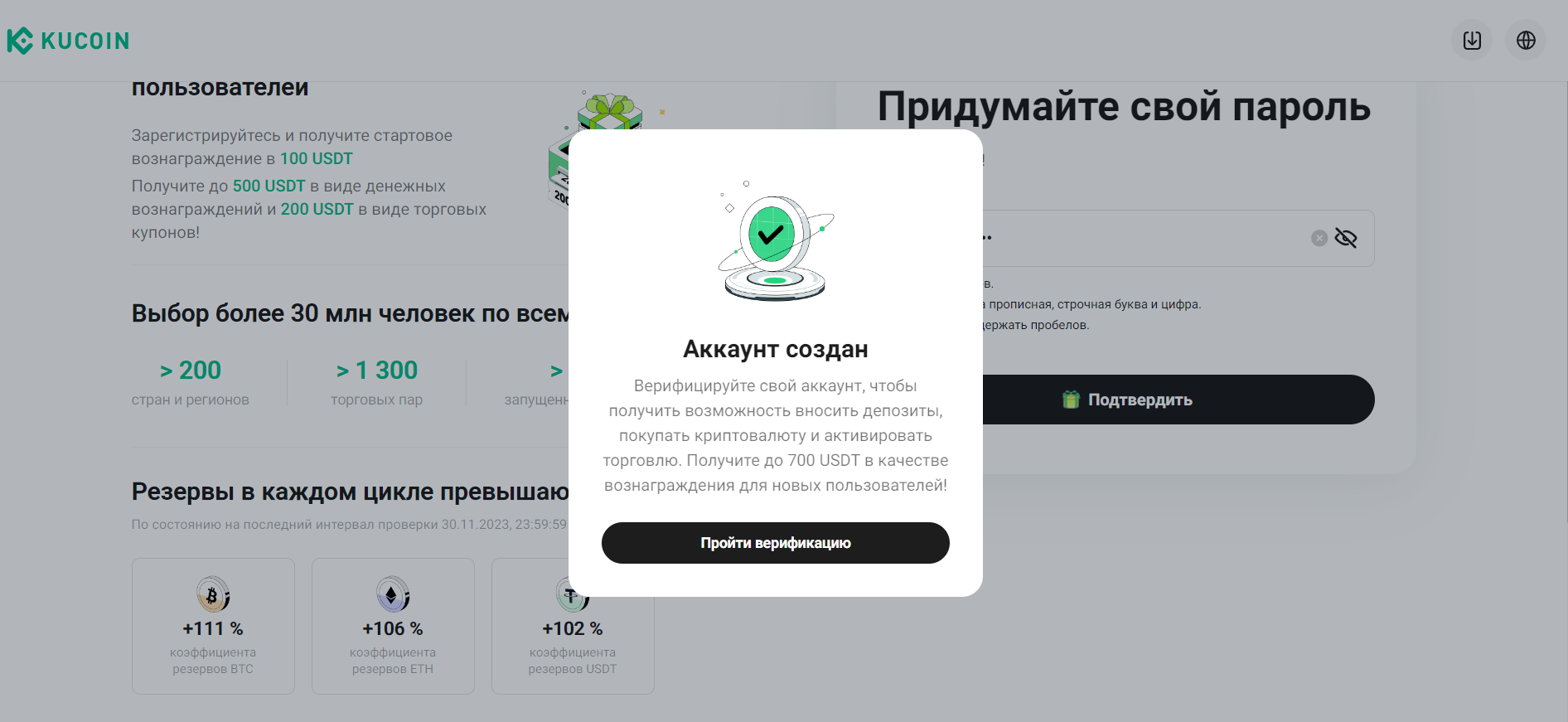 Стандартная верификация аккаунта на KuCoin занимает несколько минут. Прохождение процедуры откроет доступ к функционалу криптобиржи. Также верифицированные пользователи могут претендовать на бонусы.