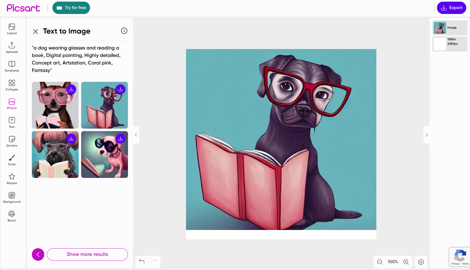 Picsart — это сервис для создания и редактирования на основе искусственного интеллекта. Платформа обладает обширным функционалом и позволяет генерировать изображения и видео, а также выбирать их стиль — например, «цифровая живопись» или «фэнтези».