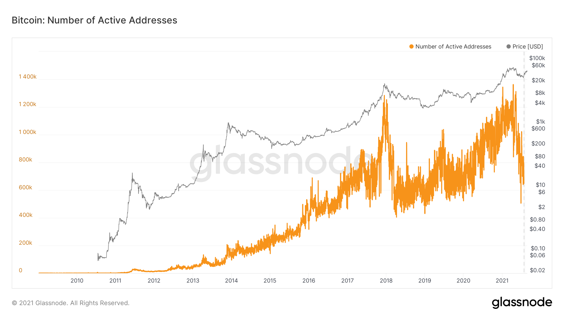 Расширение возможностей применения цифровых активов для расчетов сопроводил рост числа участников криптосообщества. Проследить его динамику можно, например, при помощи графика, который отражает количество активных адресов в сети самой капитализированной монеты – биткоина.
