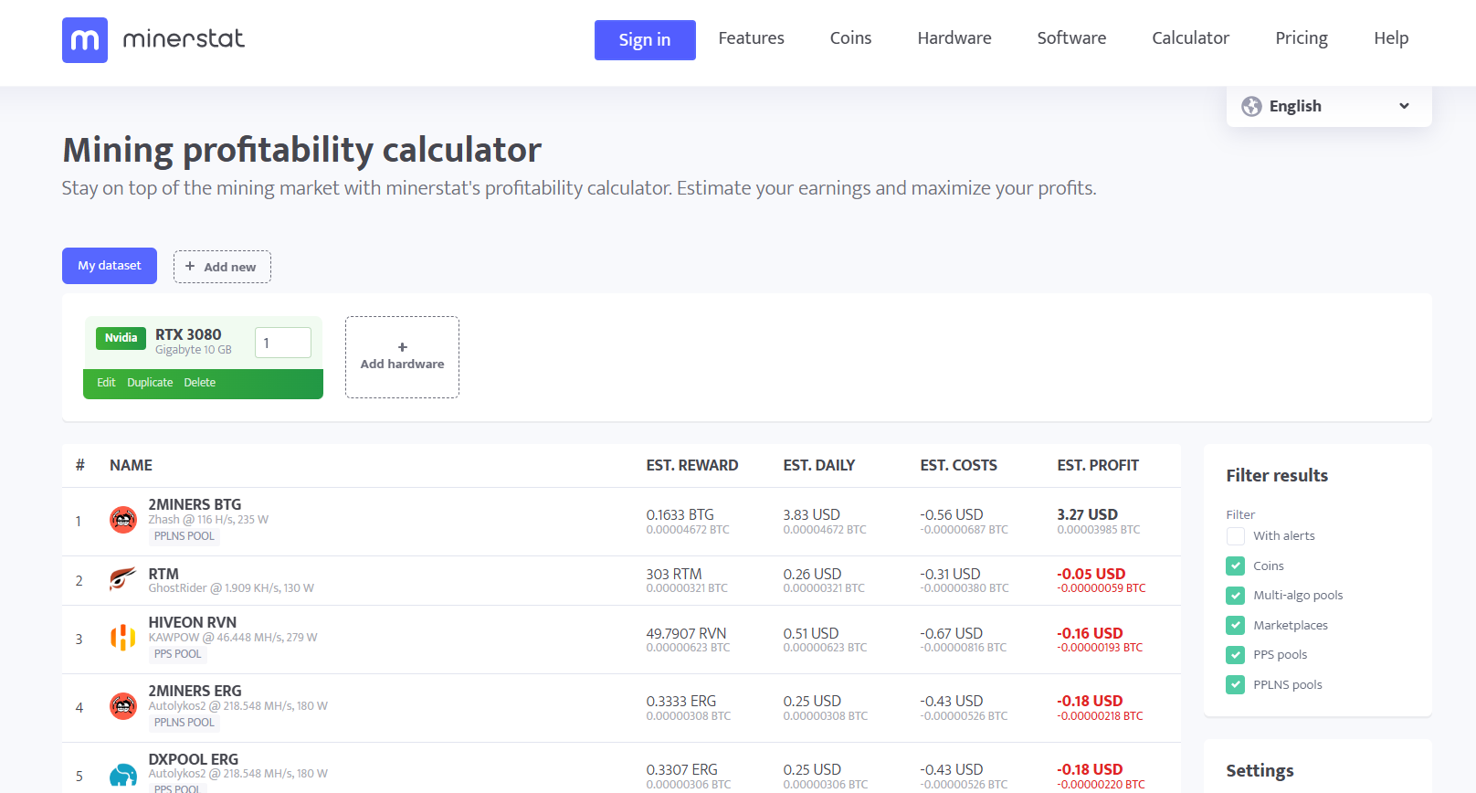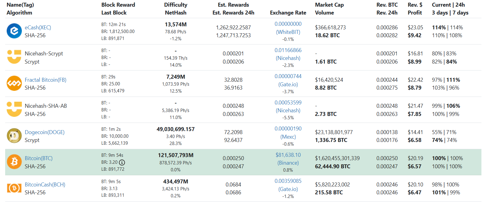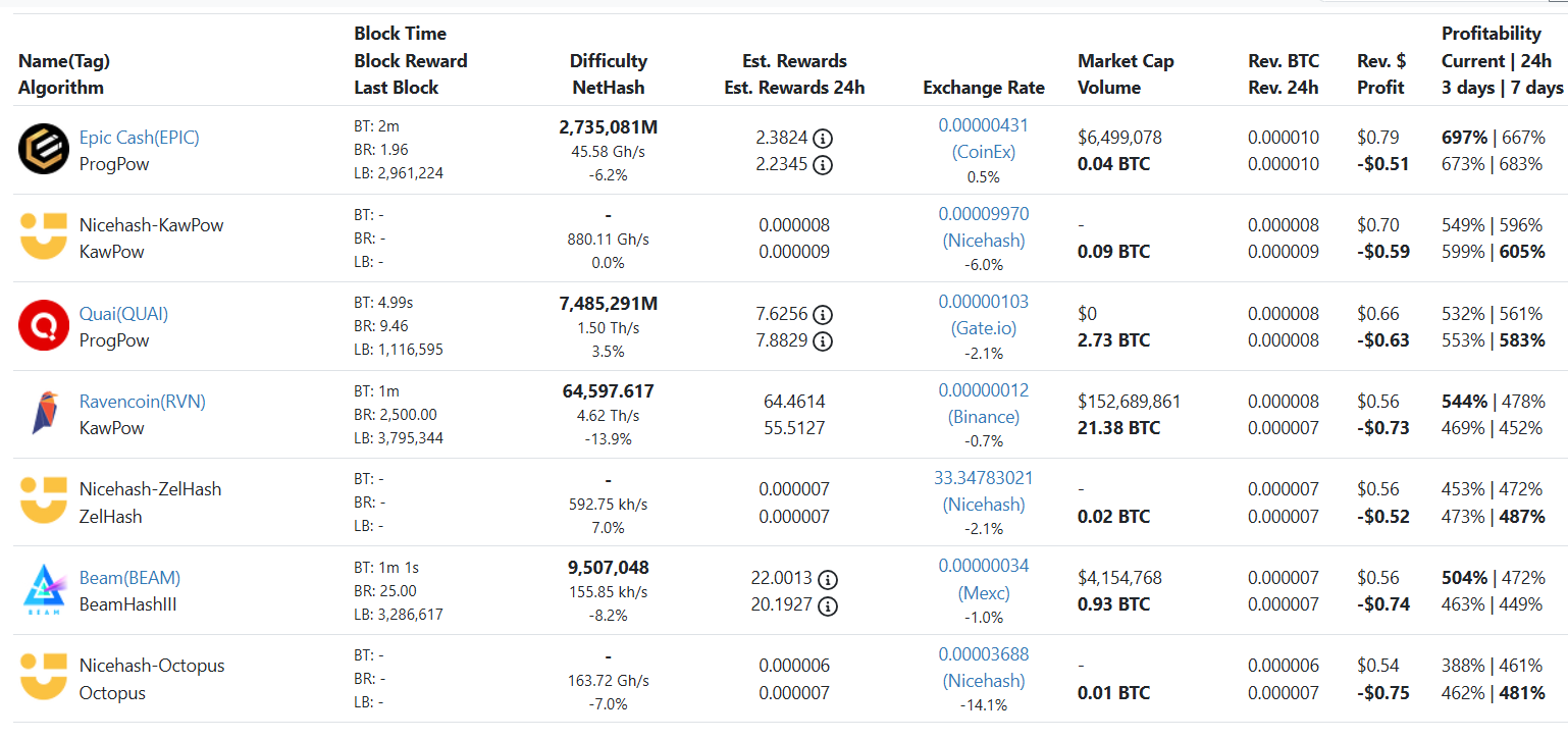Пользователи могут задать стоимость электроэнергии, и WhatToMine сразу рассчитает чистую прибыль с учетом расходов на электричество. Это удобный инструмент для сравнения разных алгоритмов (Ethash, KawPow, RandomX и др.) и коинов по прибыльности в реальном времени.