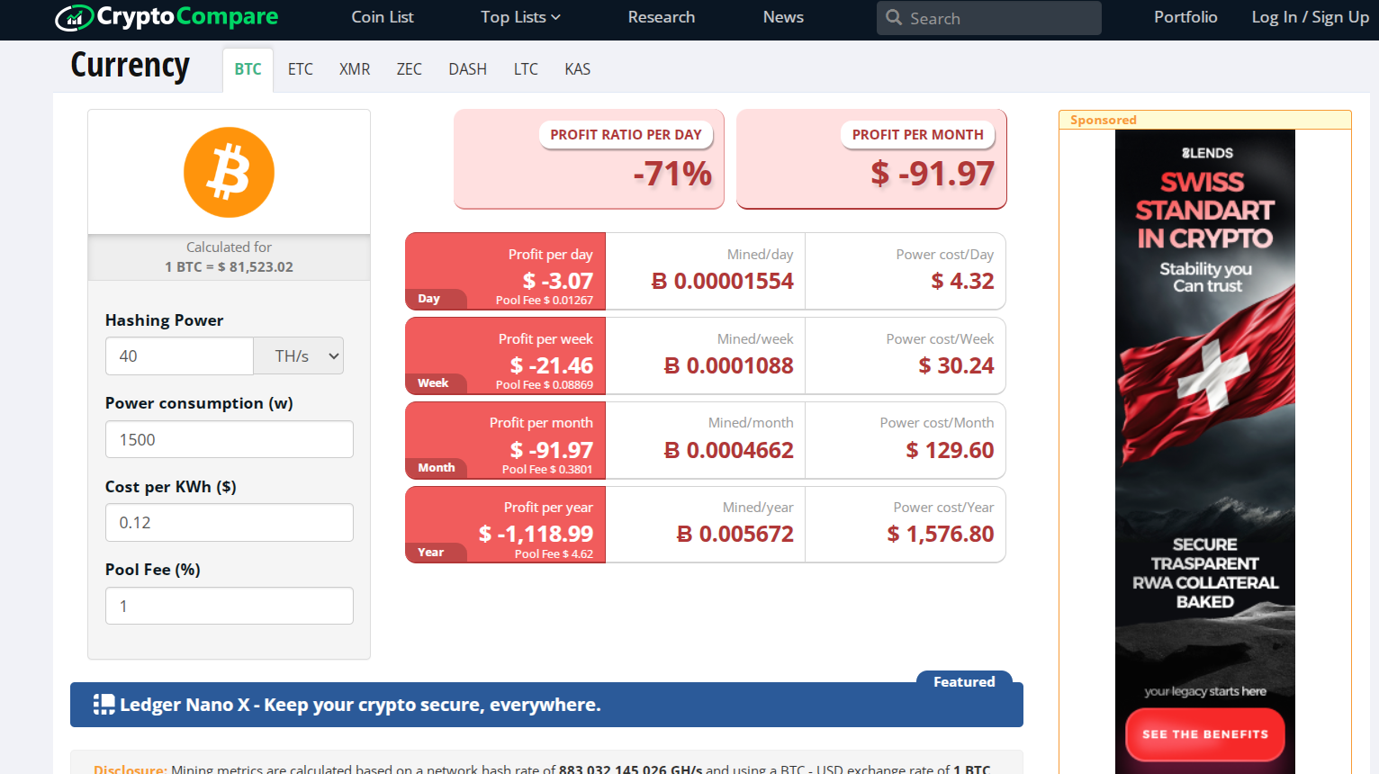 В отличие от вышеперечисленных сервисов, CryptoCompare не специализируется исключительно на майнинге. При этом платформа предлагает удобные калькуляторы майнинга биткоинов и других криптовалют. На сайте CryptoCompare можно выбрать калькулятор для конкретной монеты – например, биткоин, Litecoin – и вручную ввести хешрейт, энергопотребление, стоимость электроэнергии и прочие параметры. Сервис выдаст ориентировочную доходность (обычно в долларах США или выбранной фиатной валюте) и покажет, сколько монет получится намайнить за день или месяц.