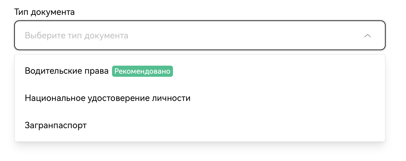 - тип документа (выберите документ, подтверждающий вашу личность)