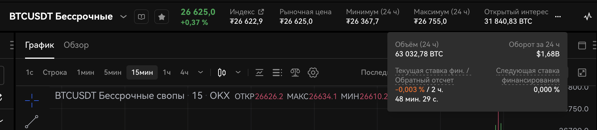Если ставка финансирования положительная, трейдеры с позицией в лонг платят трейдерам с позицией в шорт, и наоборот. Ставка финансирования рассчитывается каждые восемь часов.
