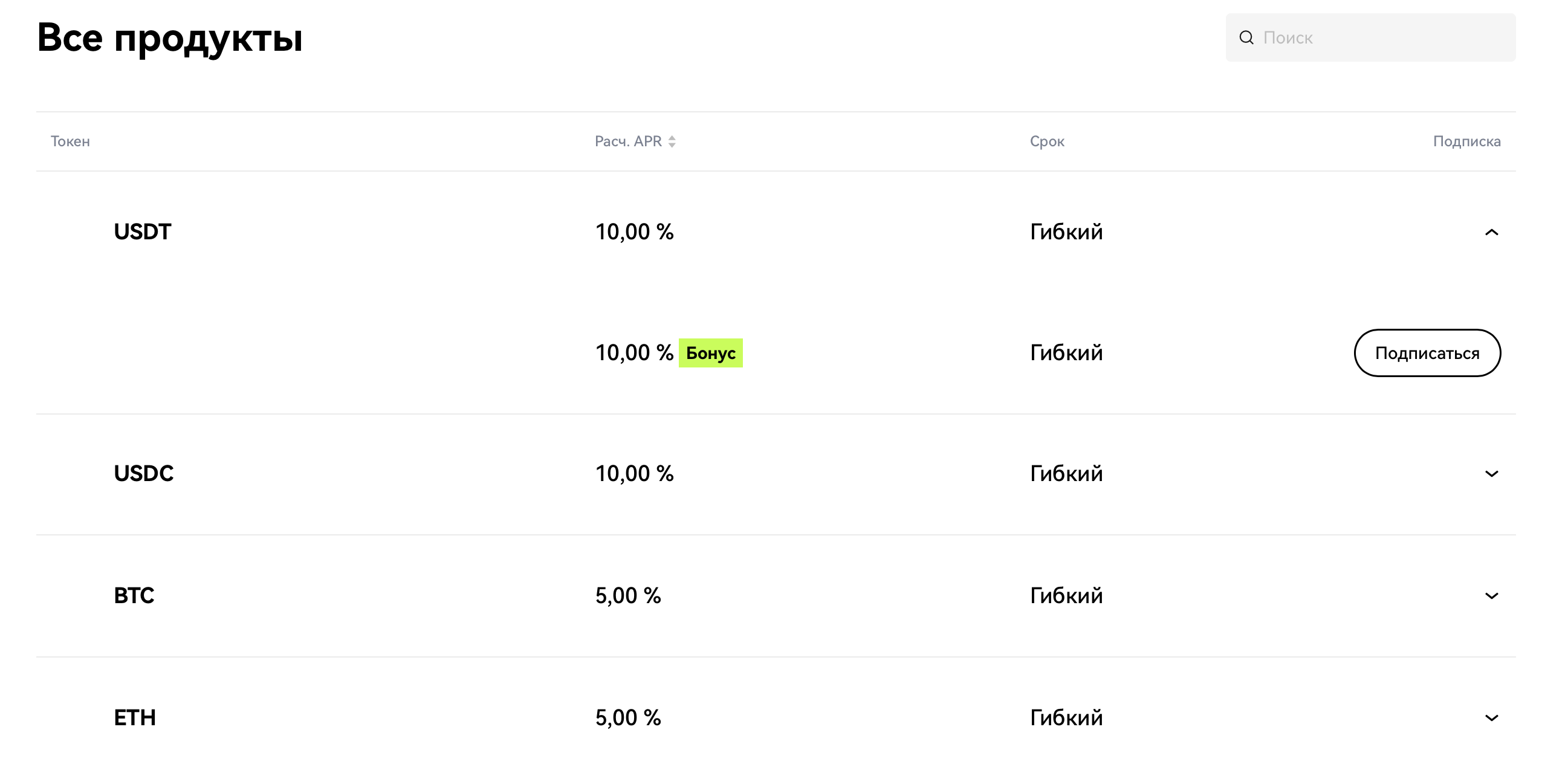 Раздел OKX Earn объединяет продукты с возможностью получения пассивного дохода. Он расширяет возможности криптобиржи, позволяя не только торговать цифровыми активами и обменивать их, но и использовать для дополнительного заработка.