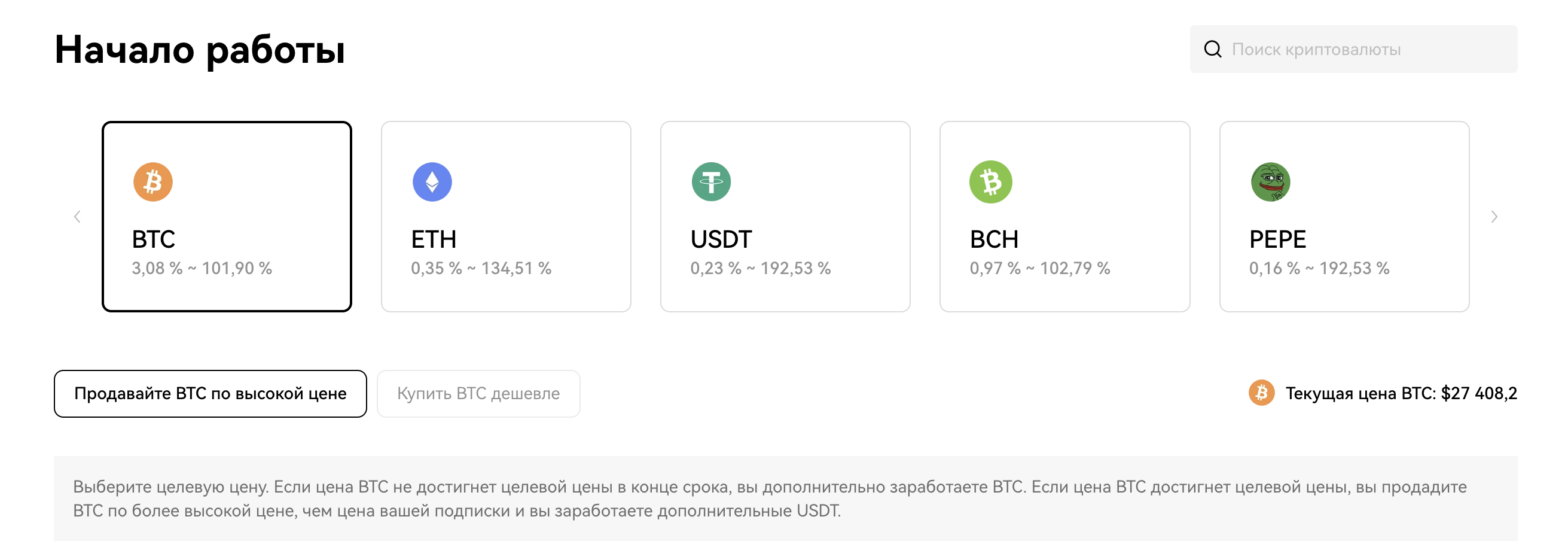 Двойные инвестиции OKX состоят из двух частей. Первая представляет собой базовый актив — это может быть BTC, ETH или другая монета. Вторая часть — стейблкоин с привязкой к доллару США.