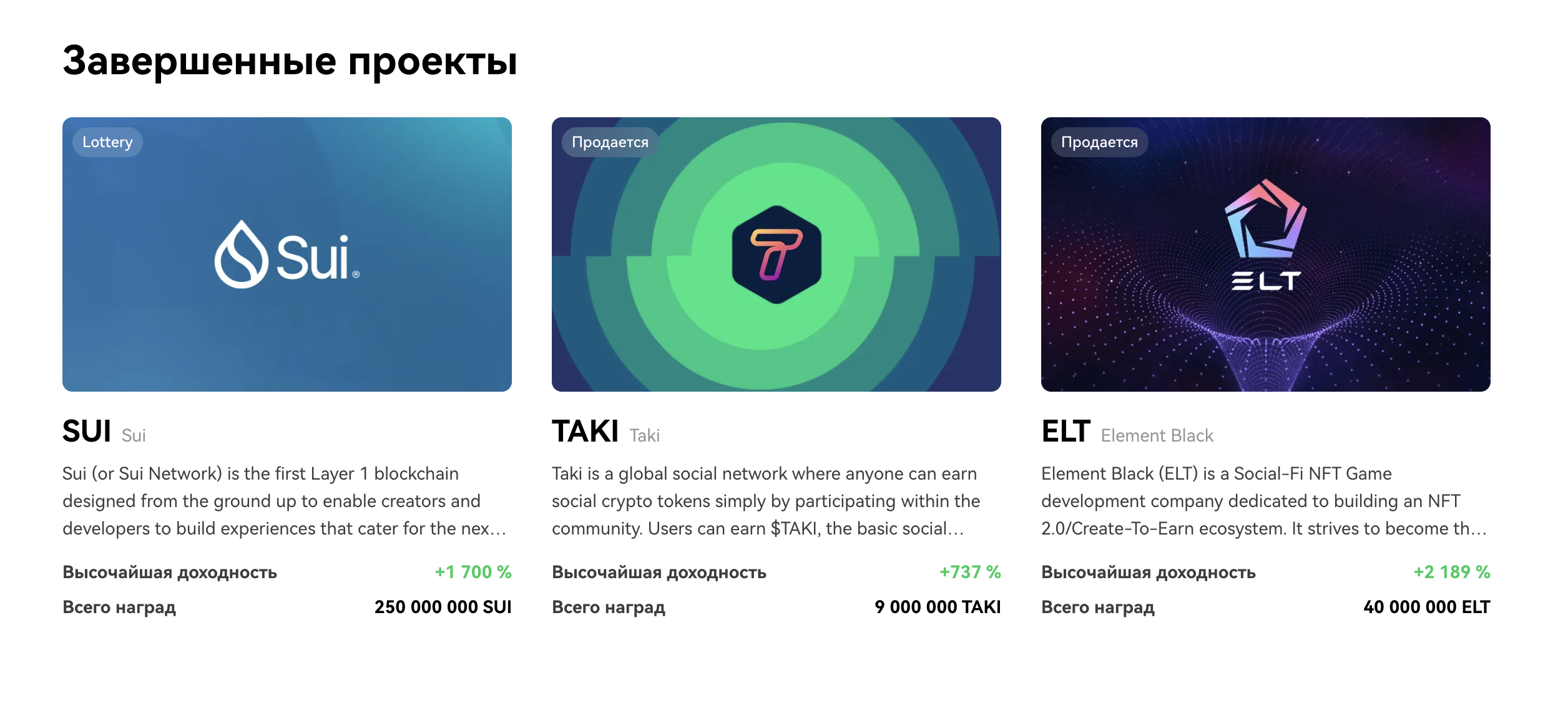 Jumpstart OKX — лаунчпад, предлагающий пользователям инвестировать в новые блокчейн-проекты. В одноименном разделе публикуются актуальные и завершенные проекты, с кратким рассказом о компании, разработчиках и правилах сбора средств.