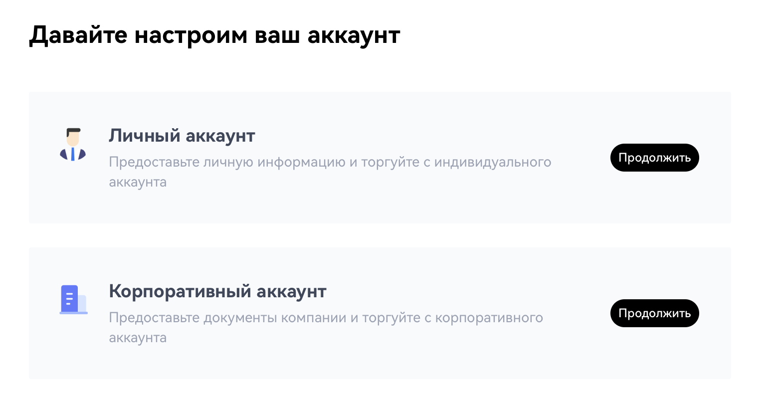 2. Выберите тип аккаунта Личный аккаунт и нажмите Продолжить