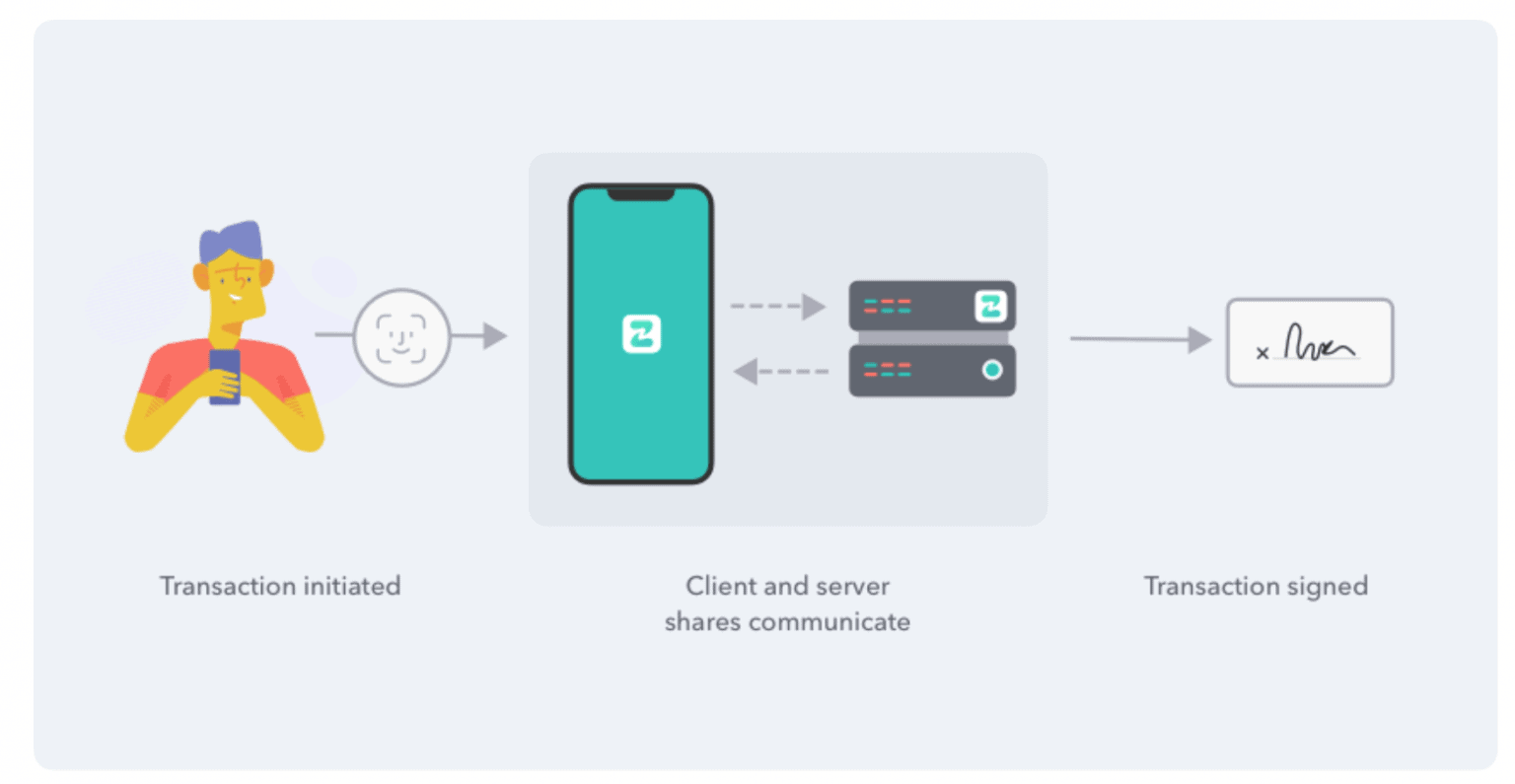 Пользователи должны подтверждать подлинность каждой транзакции на ZenGo с помощью сканирования идентификатора лица, чтобы никто другой не смог получить доступ к их криптовалюте. Благодаря этому механизму не существует единой точки отказа. Даже если хакер взломает ваш телефон или сервер компании, он не сможет украсть приватные ключи, поскольку найдет только бесполезные фрагменты данных.