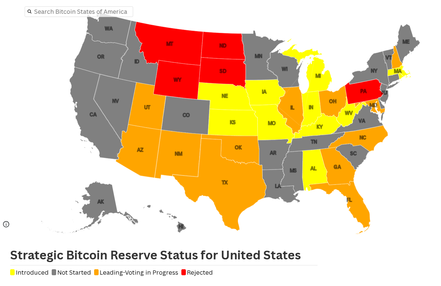 На фоне попыток Трампа пролоббировать инициативу власти многих штатов США попытались сформировать локальные биткоин-резервы. По состоянию на момент написания обзора, в 5 штатах инициативу отвергли. Во многих штатах проект находится на рассмотрении.