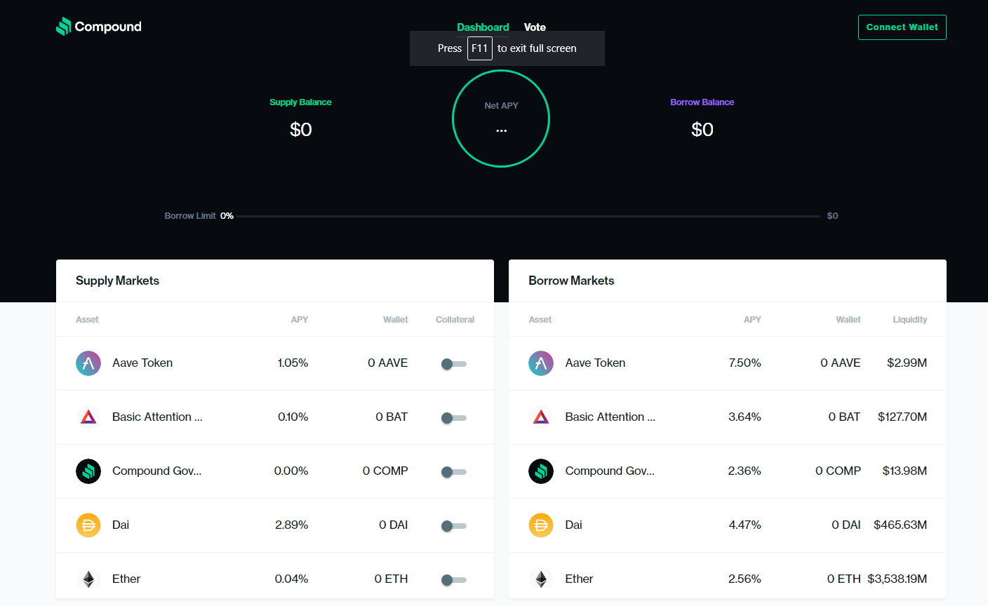 Особенность Compound в том, что это инструмент, позволяющий поставщикам и заемщикам работать вместе, обсуждая условия. Протокол обрабатывает залог и процентные ставки, а обе стороны взаимодействуют с ним напрямую.
