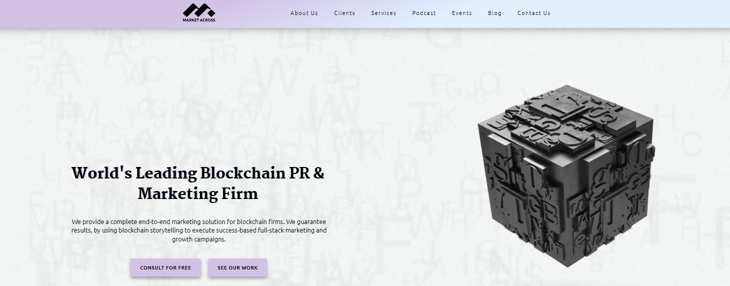 Команда экспертов Market Across предлагает комплексные маркетинговые услуги для новаторских блокчейн- и криптовалютных стартапов.