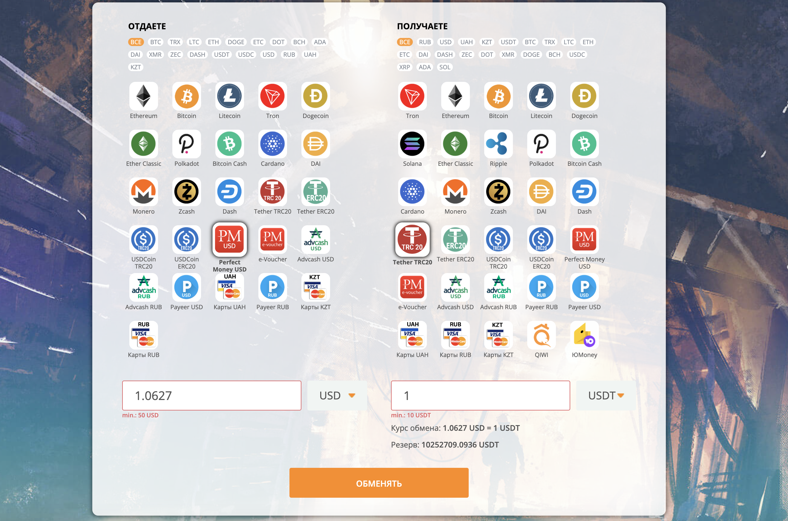 Мультивалютная платформа, по данным сайта, заработала в 2007 году. На ней представлено около 250 вариантов обмена активов (по данным BestChange).