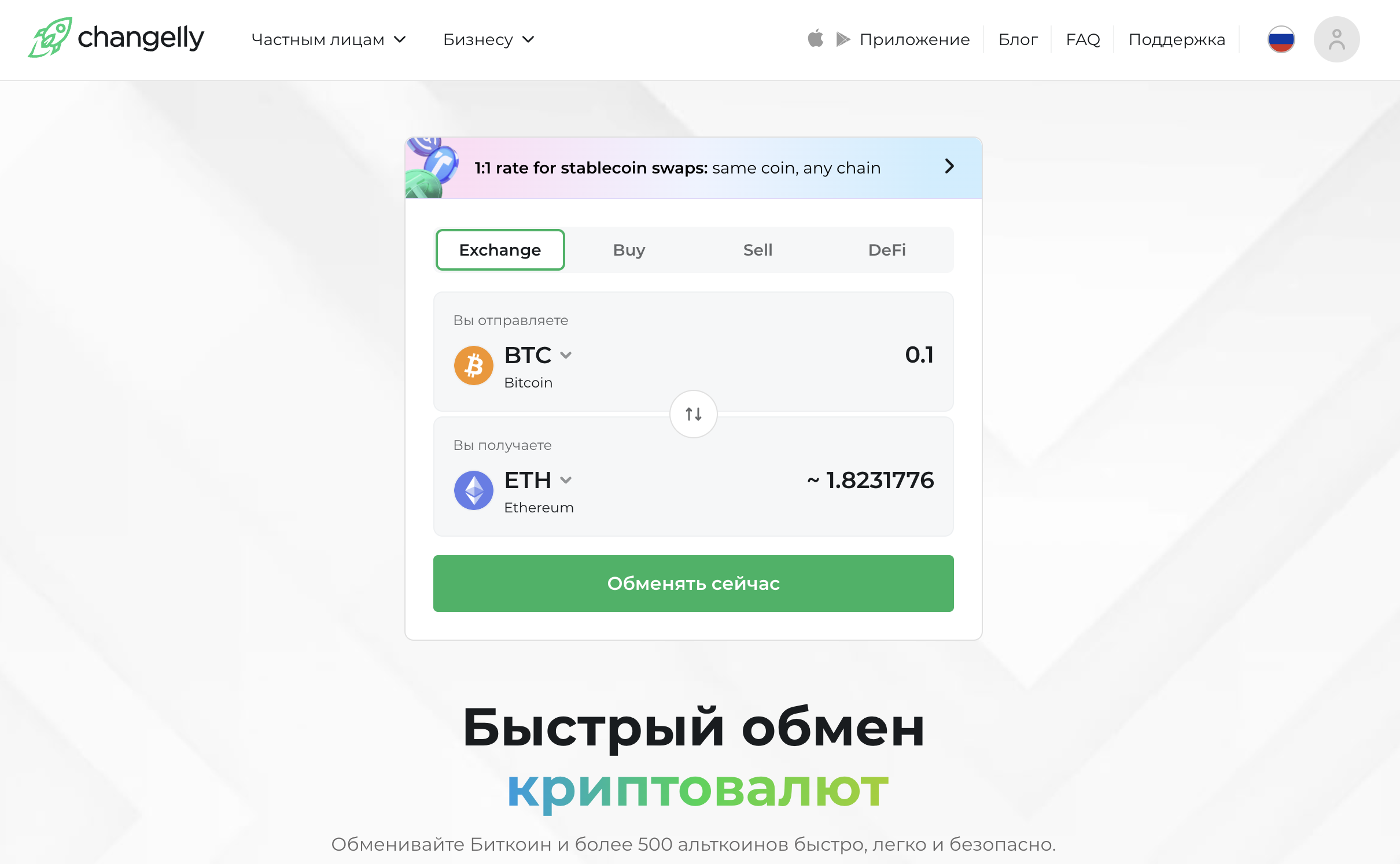 Обменник криптовалют Changelly начал работу в 2015 году. На платформе, по данным BestChange, представлено свыше 300 вариантов обмена активов, включая предложения купить биткоин.