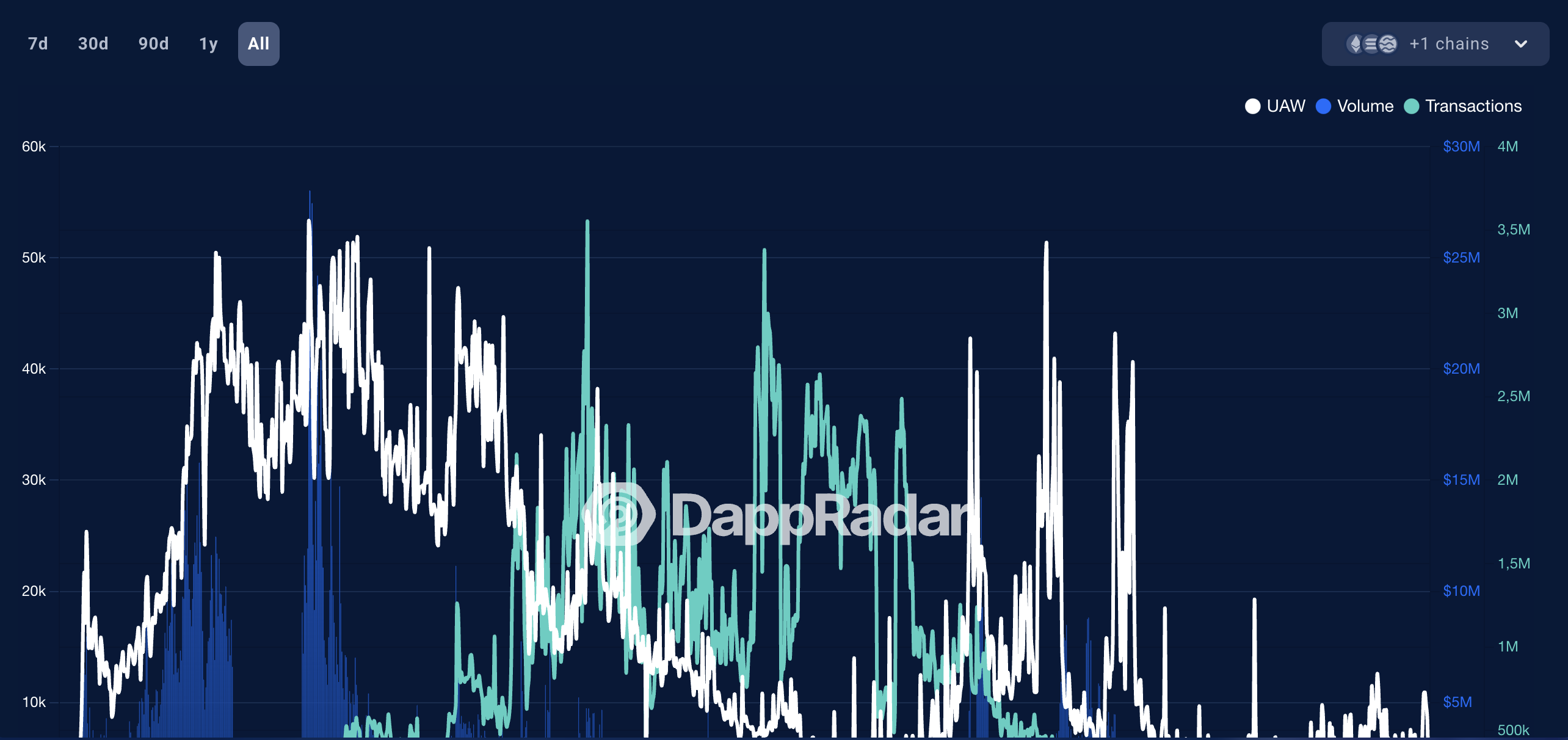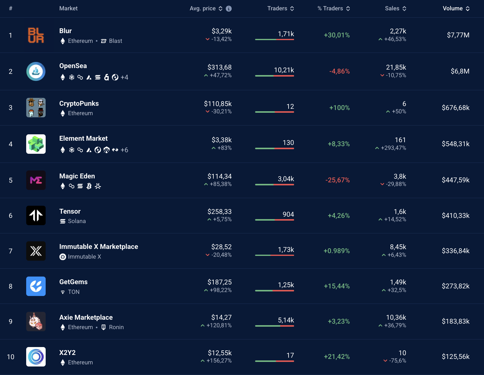 Сейчас платформа входит в топ-5 крупнейших NFT-маркетплейсов по совокупному объему торгов. Однако оборот торговой площадки почти в 20 раз ниже показателей абсолютного лидера рынка — Blur.