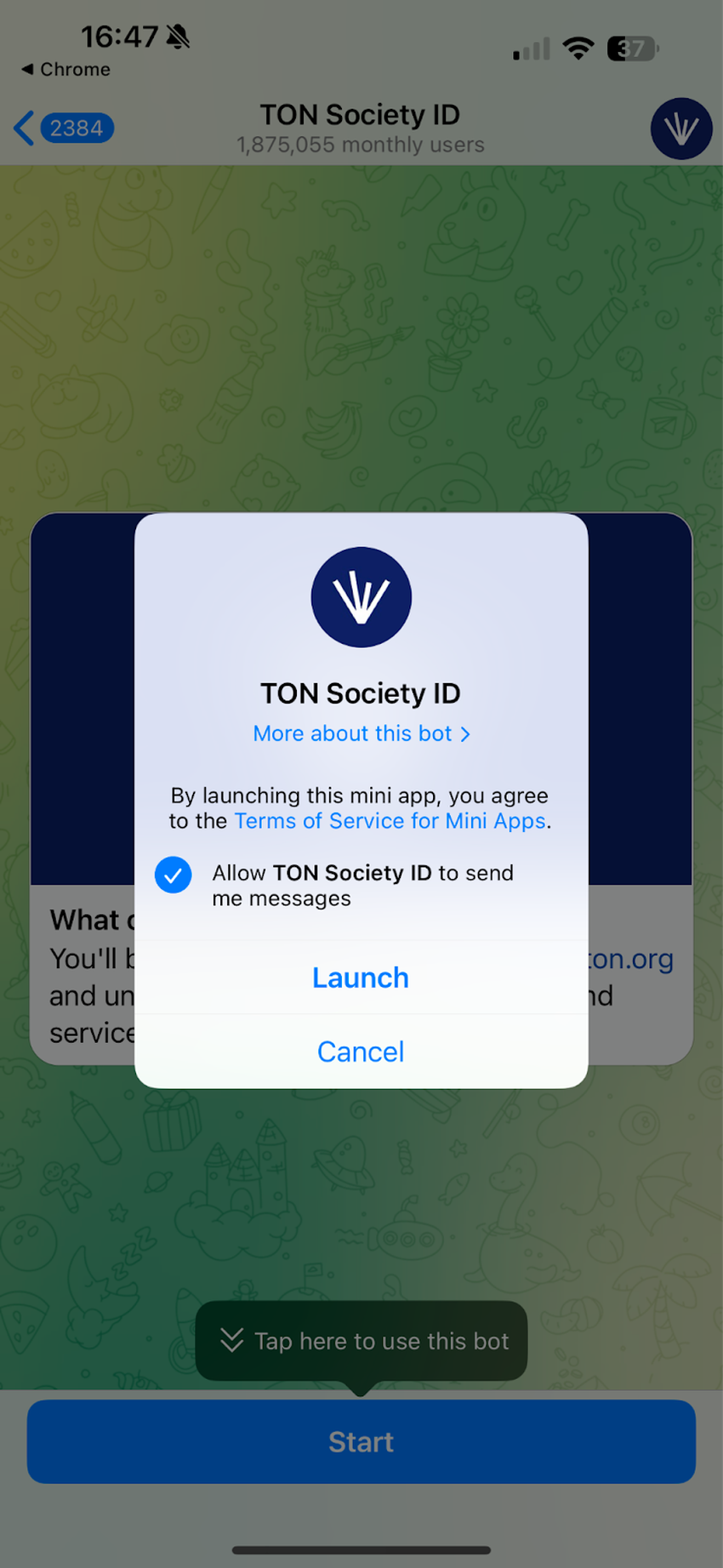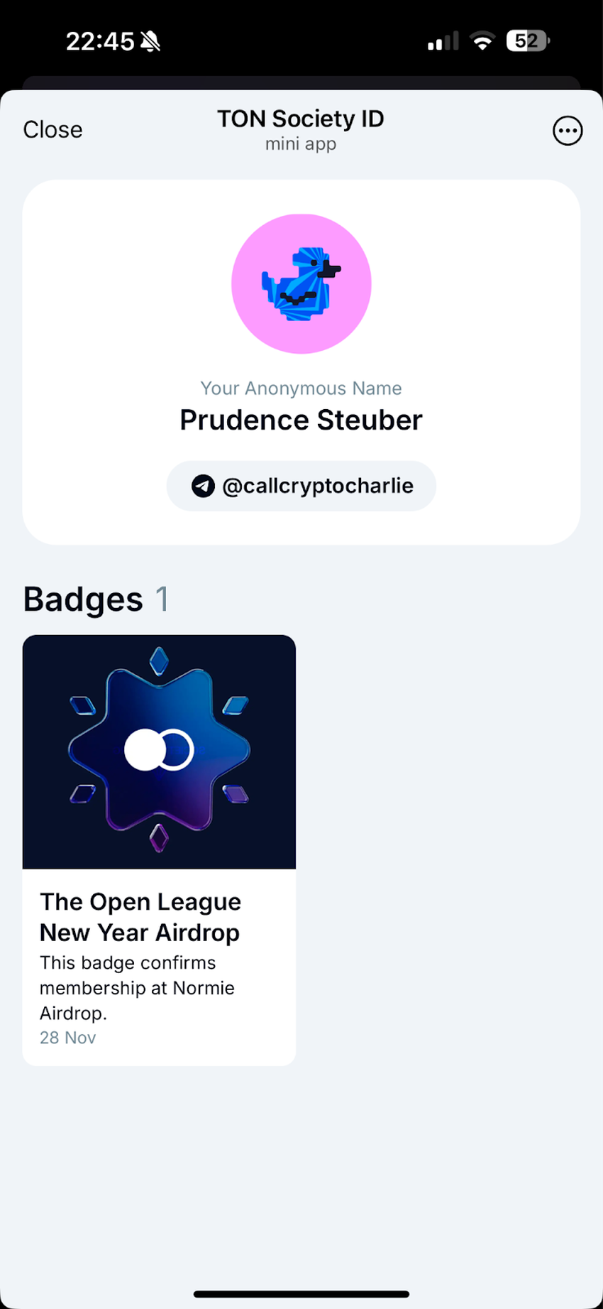 - Посетите мини-приложение TON Society, чтобы запросить бейдж.