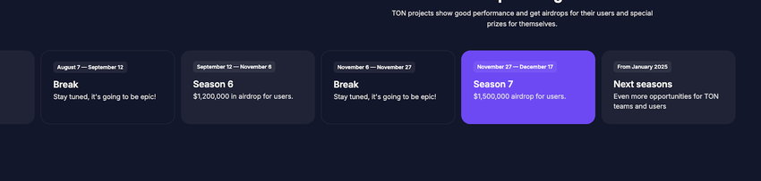 ➤ Седьмой сезон полностью посвящен DeFi: в отличие от предыдущих сезонов с NFT и приложениями, акцент сделан на укрепление децентрализованной финансовой экосистемы TON.