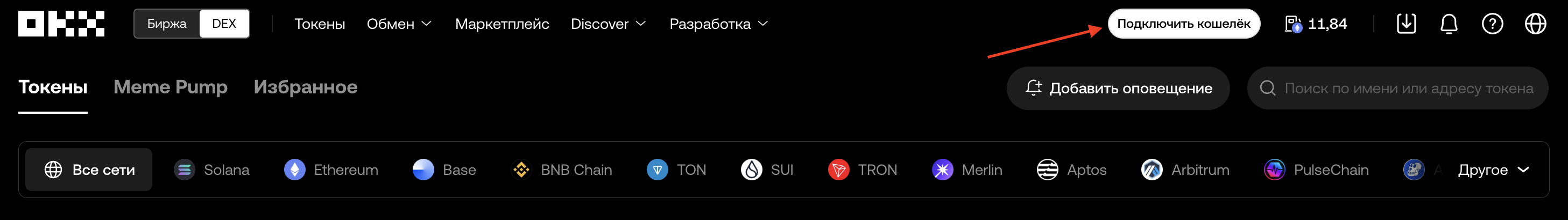 - зайдите на официальный сайт OKX и переключитесь на вкладку «DEX»;