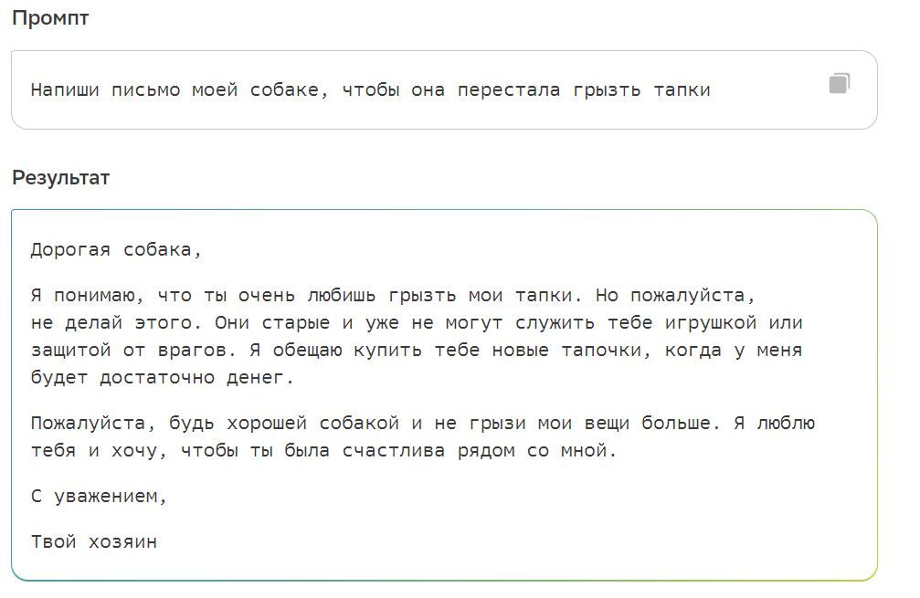 Интересно! У Яндекса также была языковая модель «Балабоба». Разработчики позиционировали проект как нейросеть, которая может генерировать, вернее — продолжать текст на любую заданную тему. В основе проекта лежало семейство нейронных сетей YaLM. По состоянию на момент написания обзора, «Балабоба» не работает. Нейросеть начала уступать по качеству своим конкурентам и разработчики отправили ее на «заслуженный отдых».