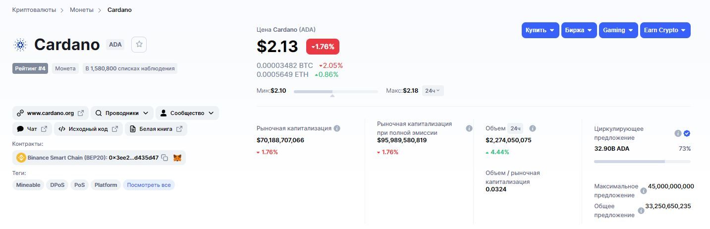 Где купить Cardano