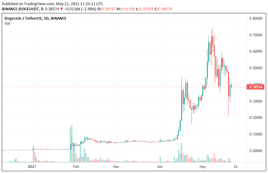 Sponsored SponsoredИнтересно! Исследование компании Piplsay от начала марта 2021 года показало, что около 37% инвесторов в США воспринимают твиты Илона Маска, как руководство к действию. Во многом поэтому все упоминания криптовалюты в его микроблоге так или иначе оказывали существенное влияние на Dogecoin.