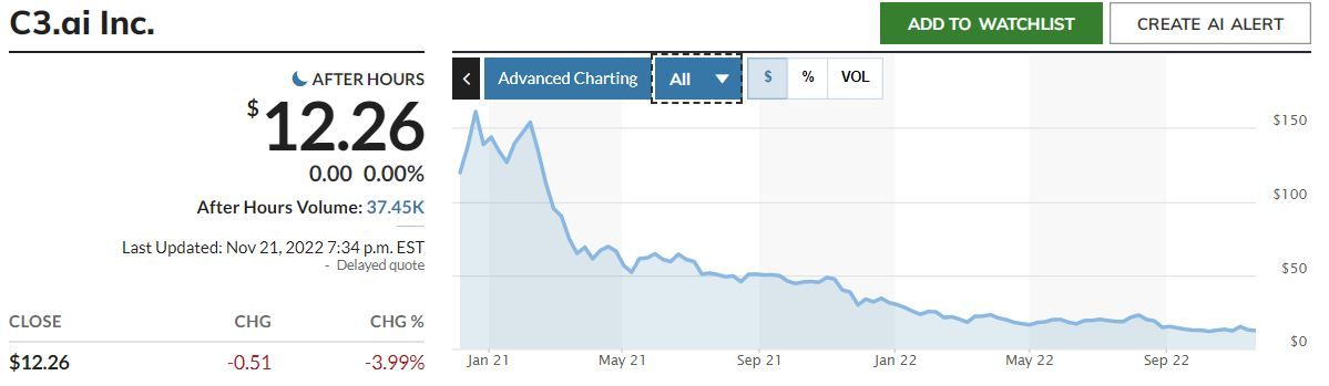C3 AI – это компания-поставщик программного обеспечения для искусственного интеллекта, которая разрабатывает ИИ-алгоритмы для совершенствования бизнес-процессов. Среди ее клиентов есть правительственные организации. Например, у C3 AI есть контракт с Министерством обороны США на $500 млн, сроком на 5 лет.