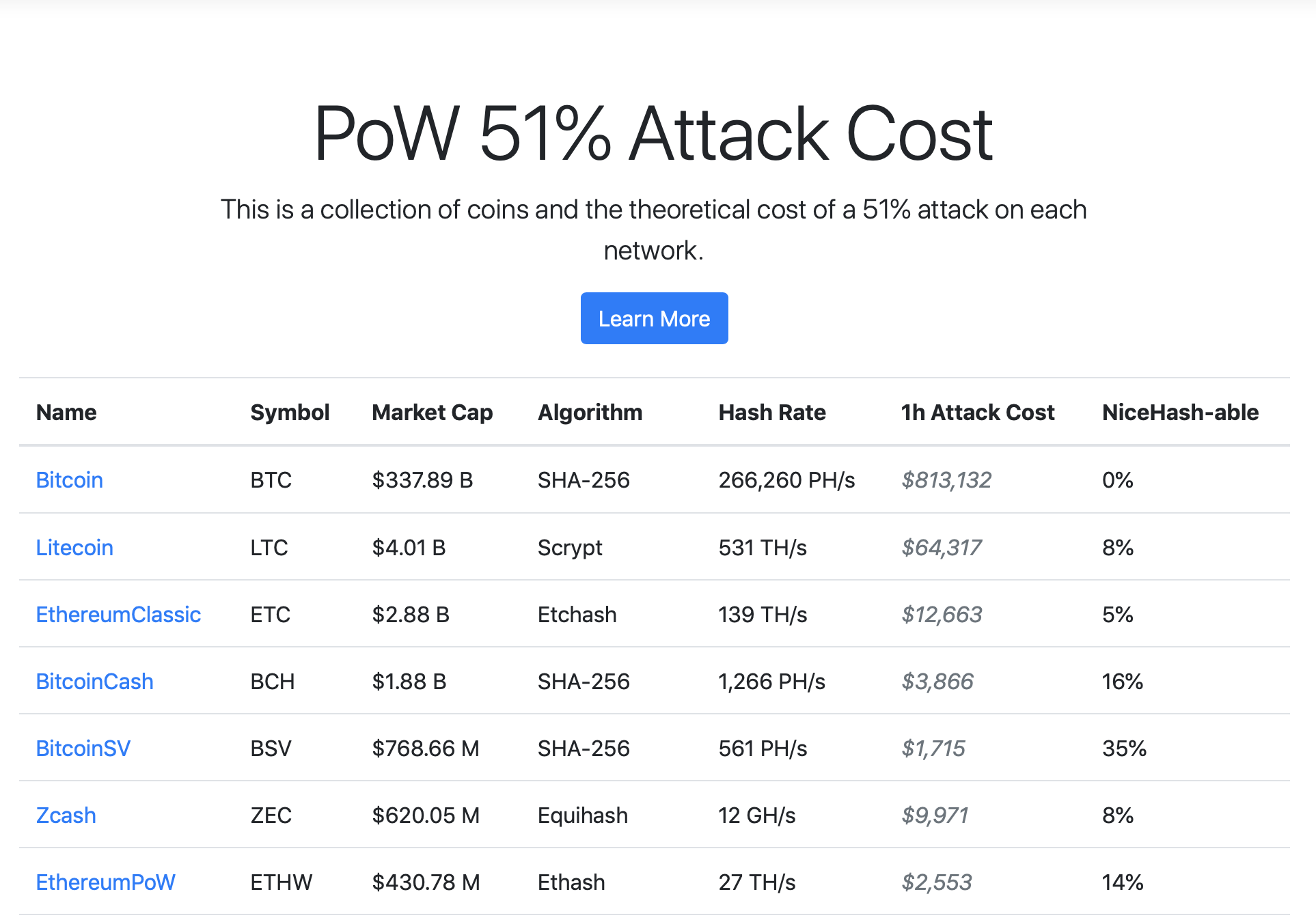 Атака 51% сложна в исполнении и обходится хакерам очень дорого. По данным Crypto51, такая атака на сеть биткоина обойдется в $813 тыс. в час.