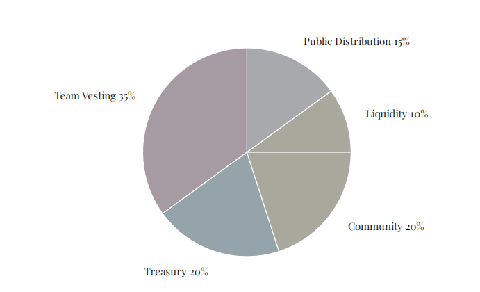 На сайте проекта представлена схема распределения токенов Мелании Трамп. Всего предусмотрено пять категорий: 15% выделено на публичную дистрибуцию; 10% на поддержание ликвидности; 20% предназначено для сообщества; еще 20% уходит в казначейство; а оставшиеся 35% зарезервированы для команды проекта.