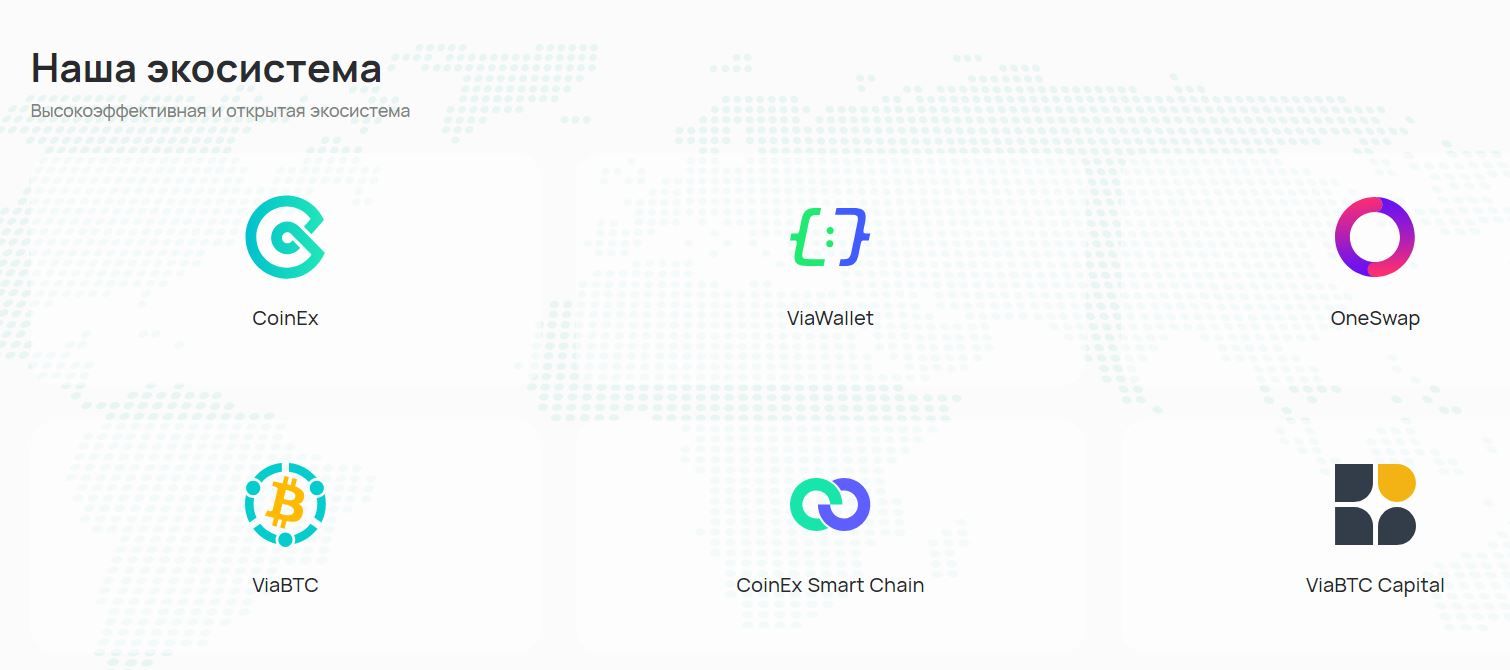 4. У CoinEx обширная экосистема. Команда проекта создала цифровую платформу, в стенах которой пользователи могут получить максимум услуг, минуя препятствия. Такой подход позволяет экономить деньги и время. В экосистему CoinEx, помимо криптобиржи, также входят: