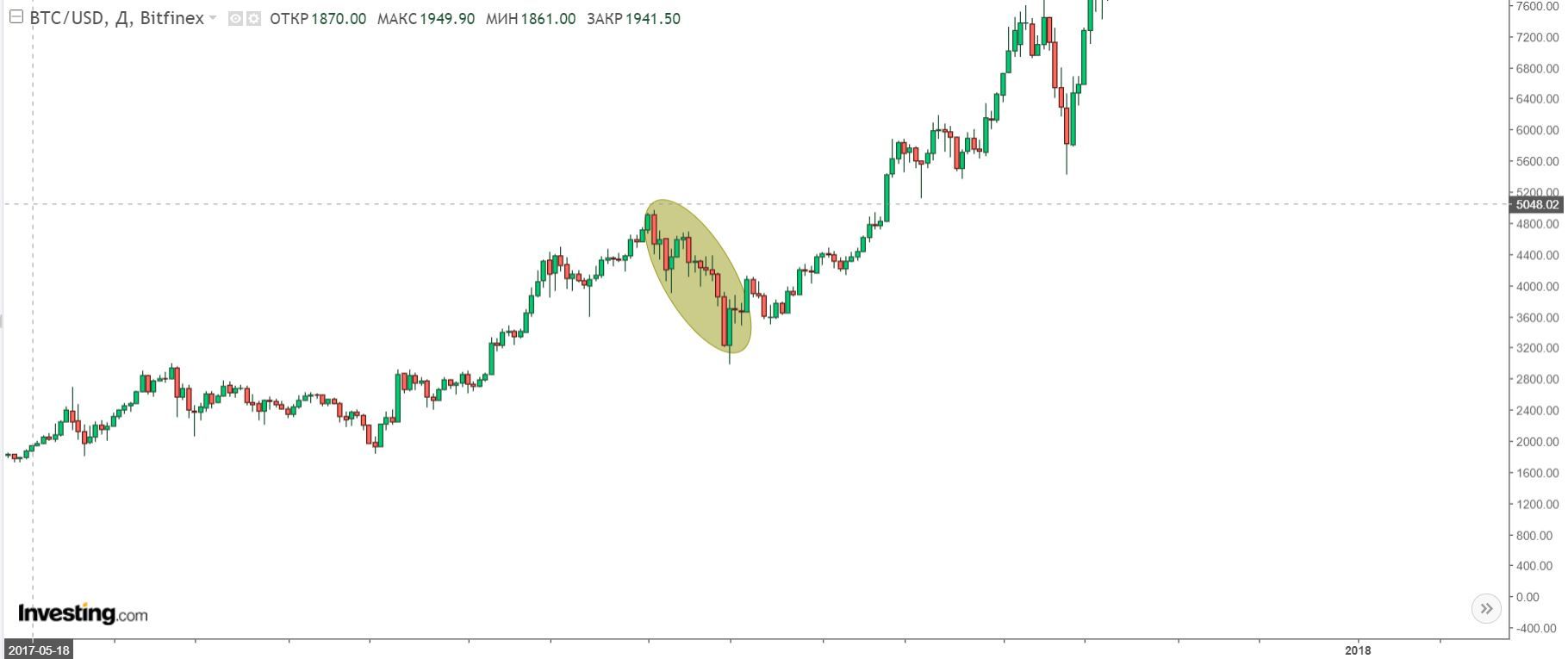 | 2018 год | На рынке цифровых активов настала «криптозима». В течение года курс биткоина снижался, пока, в декабре, не достиг локального уровня близ $3200. |