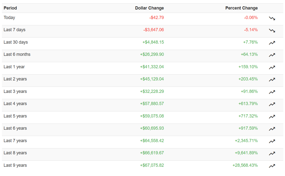 | 2021 год | В ноябре 2021 года биткоин обновил абсолютный максимум стоимости близ $69 тыс. Также в этом году Сальвадор стал первой страной, которая сделала BTC национальной валютой. |