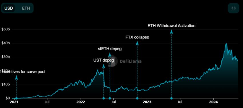 Доминирующую позицию пока занимает Lido. На момент написания материала в протоколе заблокировано $27,4 млрд. Однако настолько быстрый рост EigenLayer потенциально угрожает положению проекта. Вполне вероятно, что именно поэтому Lido планирует поддержать Symbiotic — для того, чтобы сохранить свое доминирование.