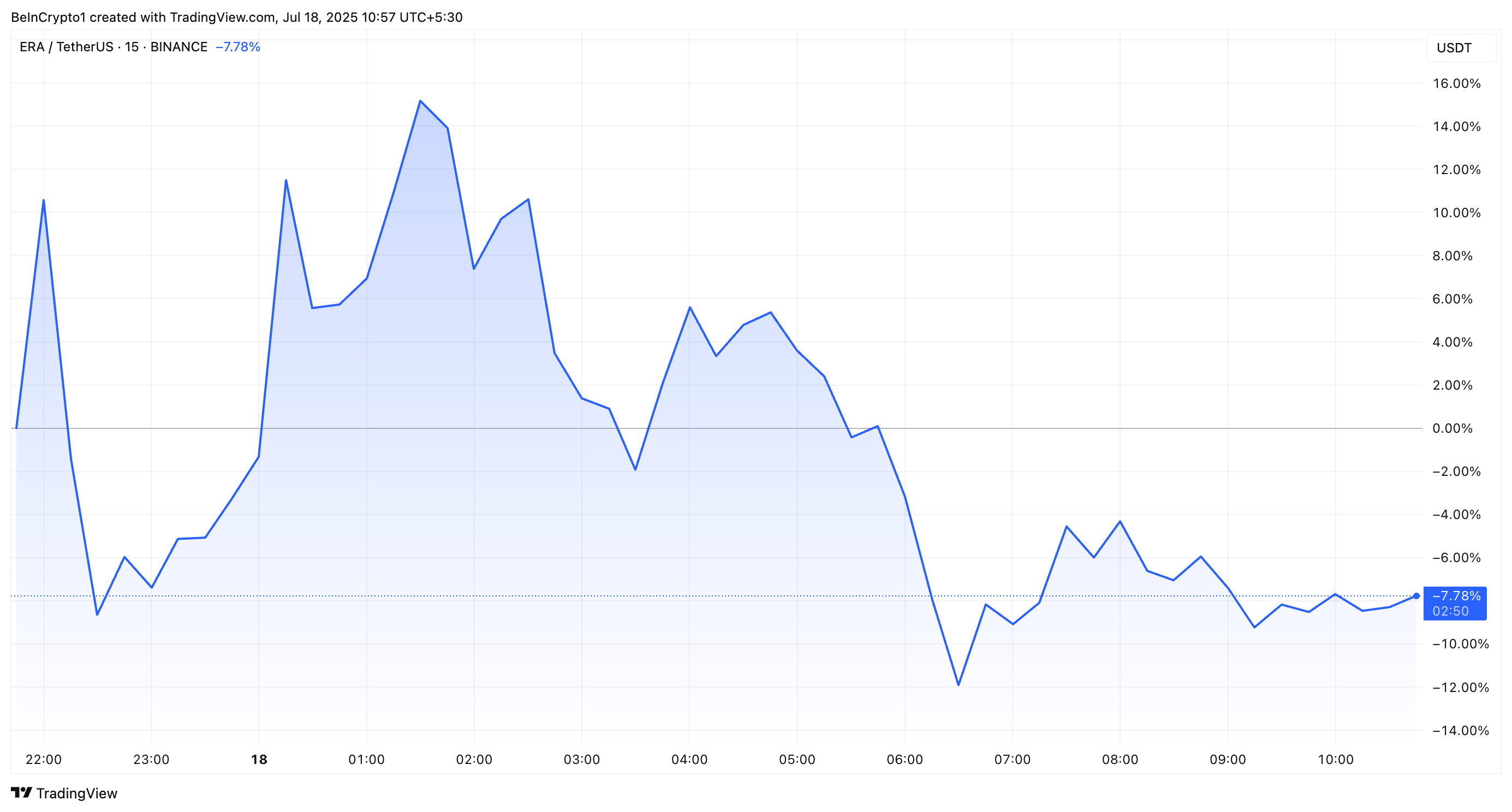 Объявление вызвало небольшой рост цены на 9,6%, однако эти успехи были недолговечными. Падение цены связано с аирдропом ERA: вчера Фонд Caldera открыл его для поступления заявок.