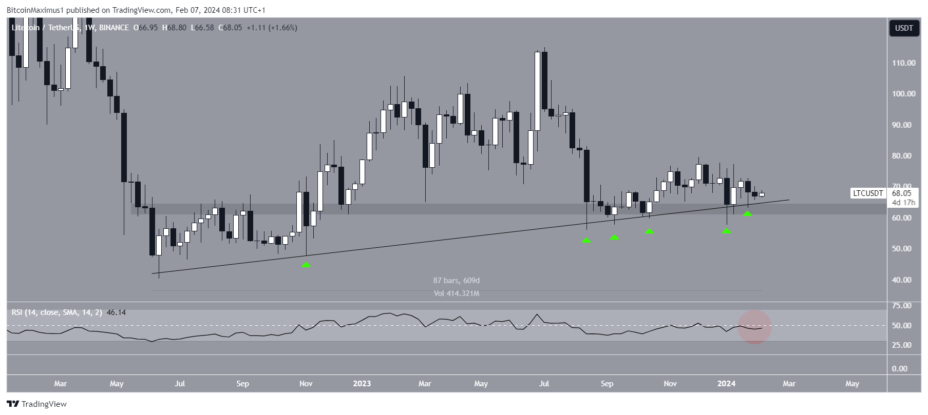 Цена Litecoin (LTC) консолидируется выше долгосрочного уровня поддержки с августа 2023 года.