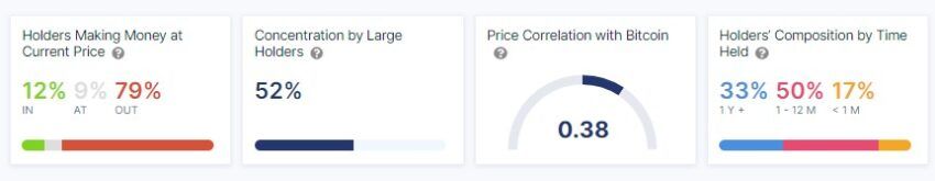 На момент написания материала стоимость LTC колеблется около $62, и криптовалюта остается прибыльной только для 12% ее холдеров. Согласно исследованию IntoTheBlock, сейчас только 9% инвесторов в LTC остаются без убытков, в то время как 79% потеряли средства на этом активе. Большинство ончейн-сигналов криптовалюты остаются медвежьими.